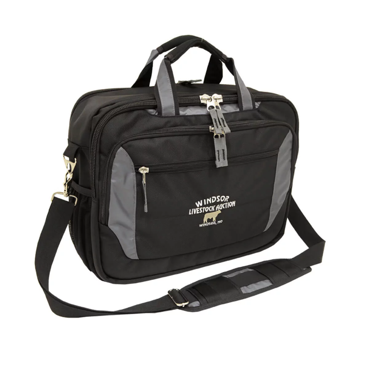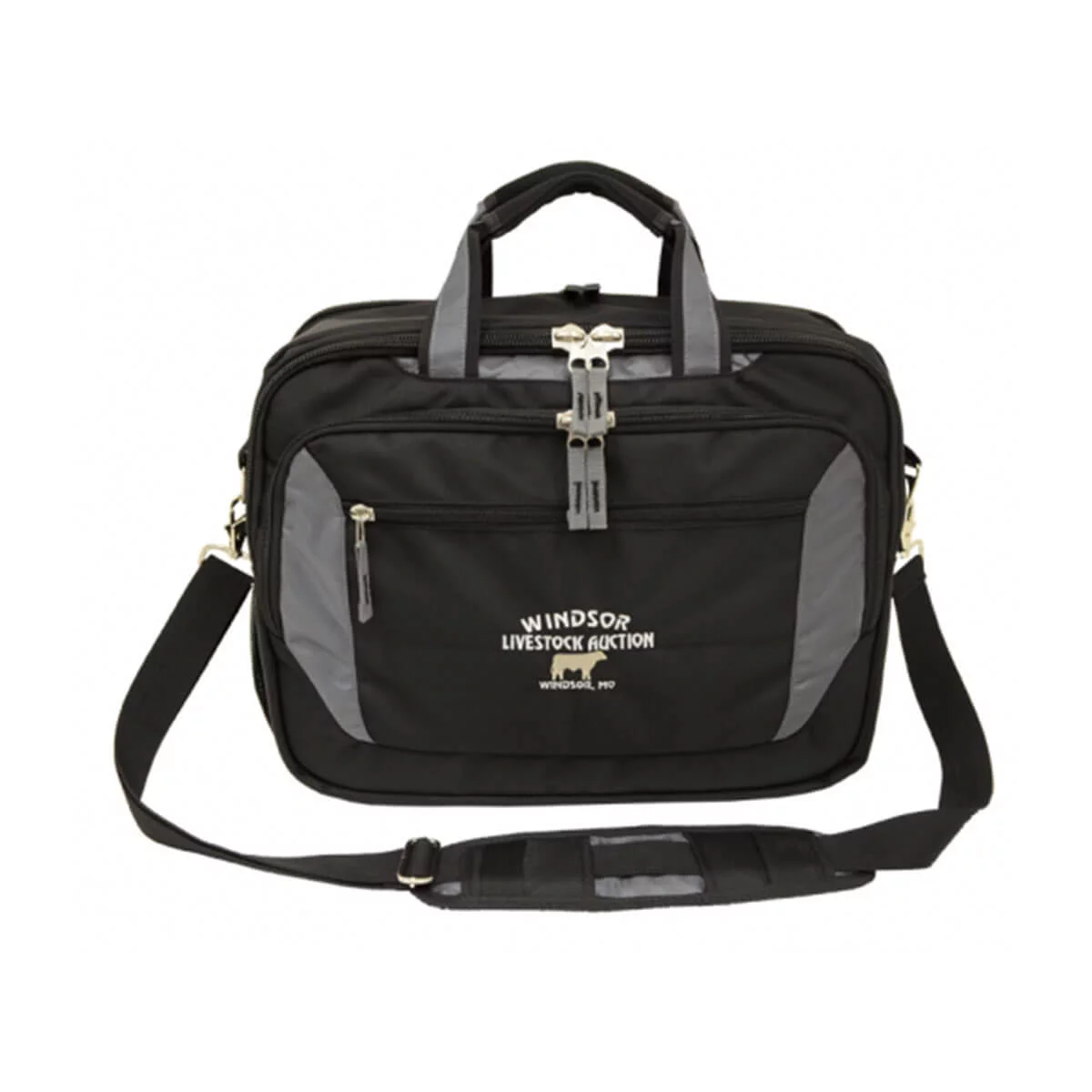 Large main zippered compartment with padded laptop holder, Secondary large zippered compartment with two divider, One large zippered pocket with inside holder and organiser, Front zippered pocket and one elastic mesh pocket on the left, Tow strap system at back to fit over trolley handle, Extra large and neoprene shoulder pad and carry handle. Material – 1680 denier nylon and textured nylon