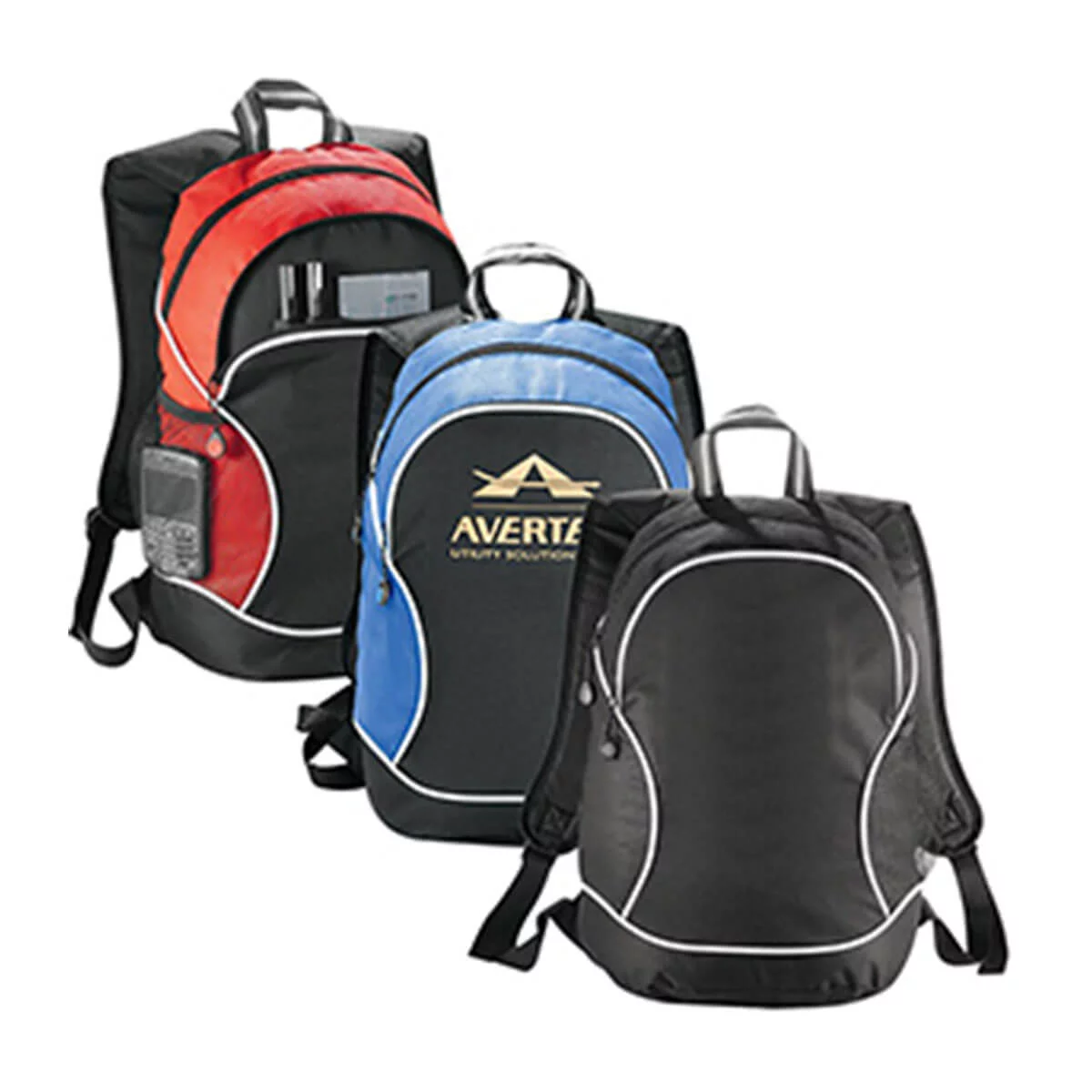 Made from 600D polycanvas and diamond non-woven material. Main zippered compartment. Front zippered pocket with interior organization. Side mesh pocket. Padded, adjustable shoulder straps. Available in 3 colours.