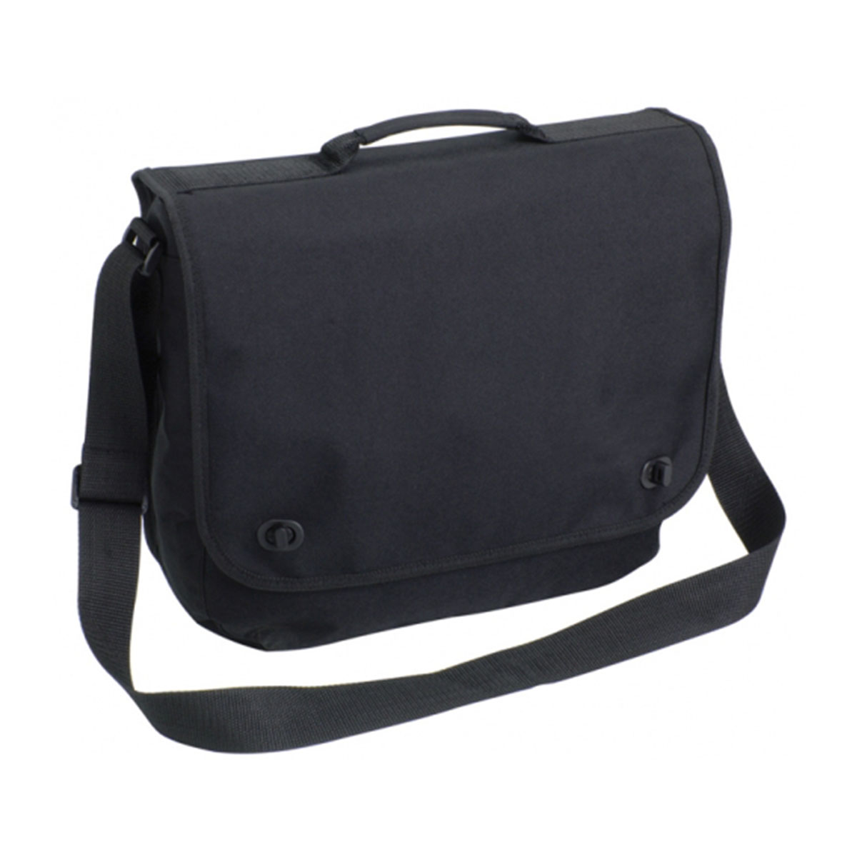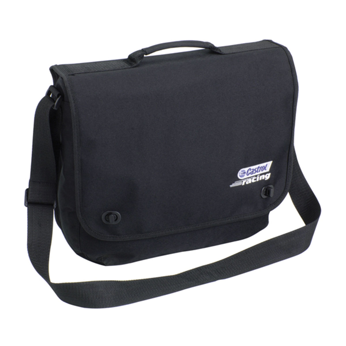 Gusseted compartment closes with clip fastener, Organiser under front flap, Business card holder on back, Adjustable shoulder strap with strong carry handle. Material – 600 Denier Nylon