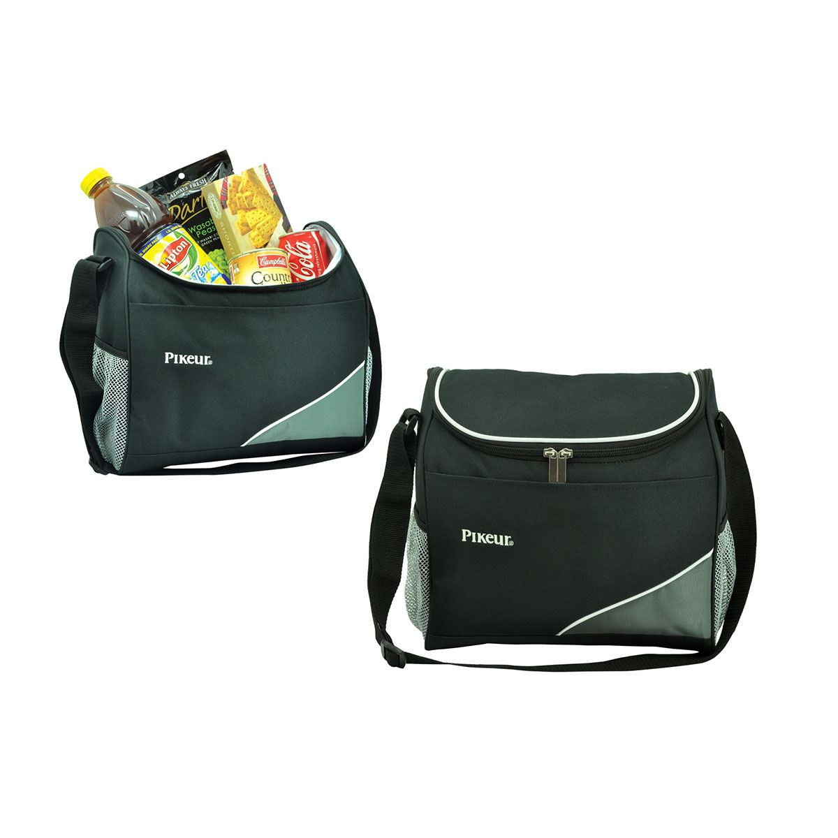 Large main zippered compartment, Water-proof plastic insert with velcro for easy removal and cleaning, Front open pocket with velcro, Mesh pockets on right sides, Adjustable carry handle, 15 litre capacity. Material – 600 Denier Nylon with Dense Foam Insulation