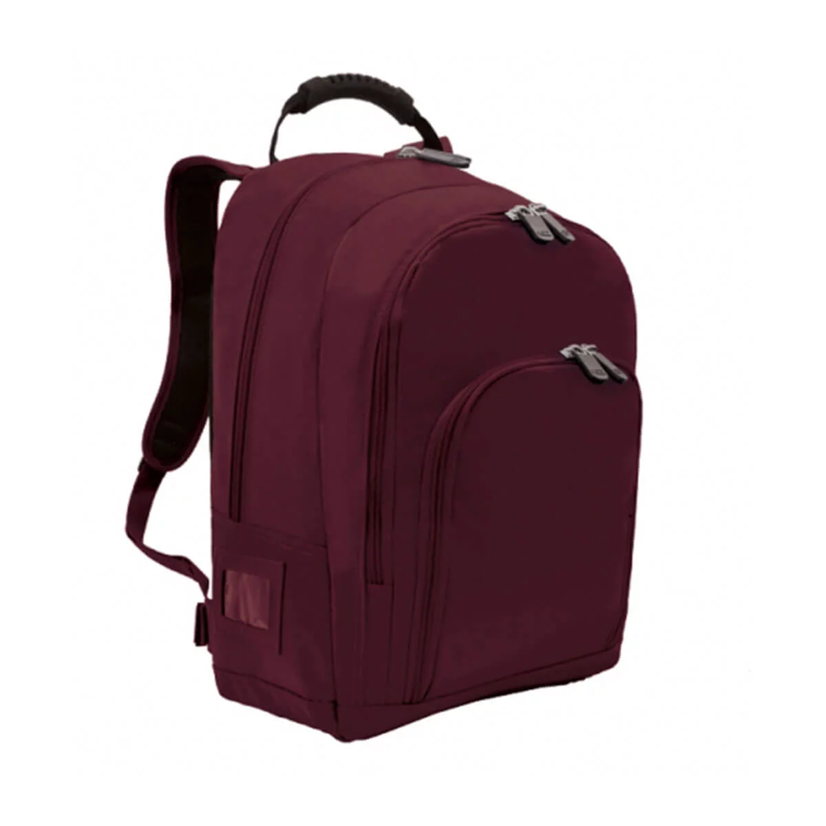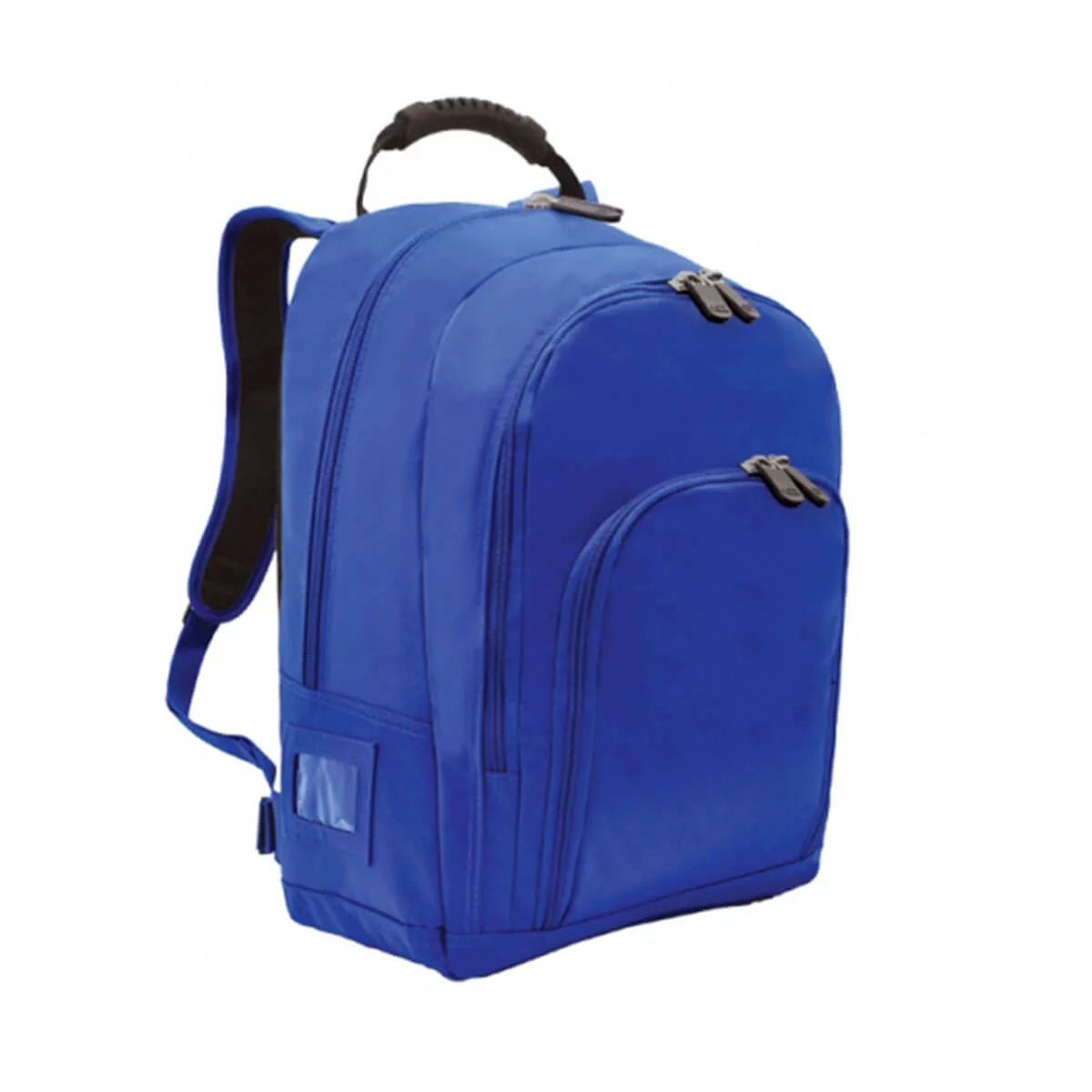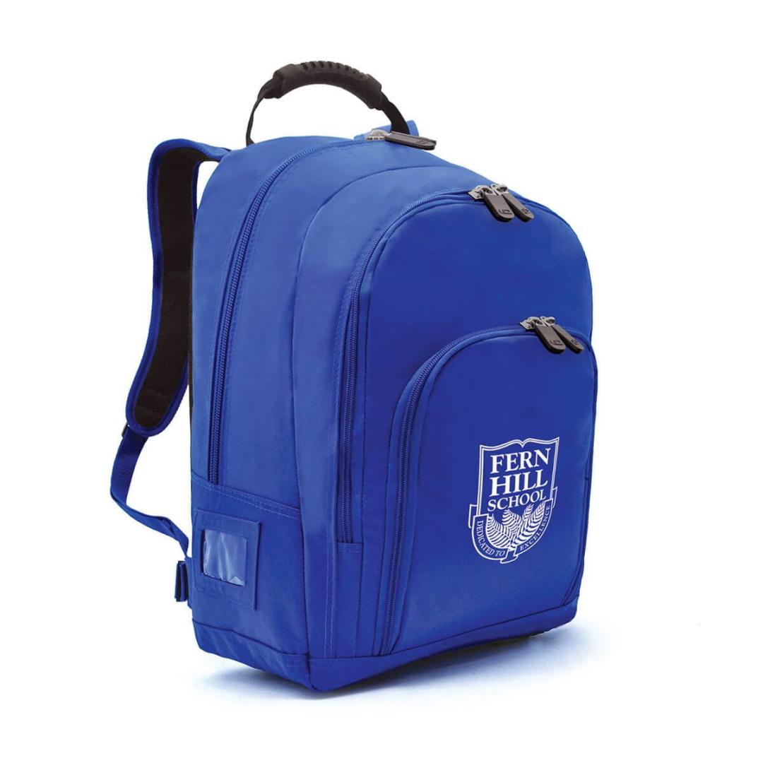 Main compartment with extra large zipper, Second compartment with zipper, One front zippered pocket, One clear ID pocket at the left, One drink bottle holder with mesh at the right, Padded and adjustable backpack strap with moulded handle, Extra pad at the back for back support, Waist buckle for support, Studded base for durability. Material – 420 Denier with Non-Phthalate nylon backing