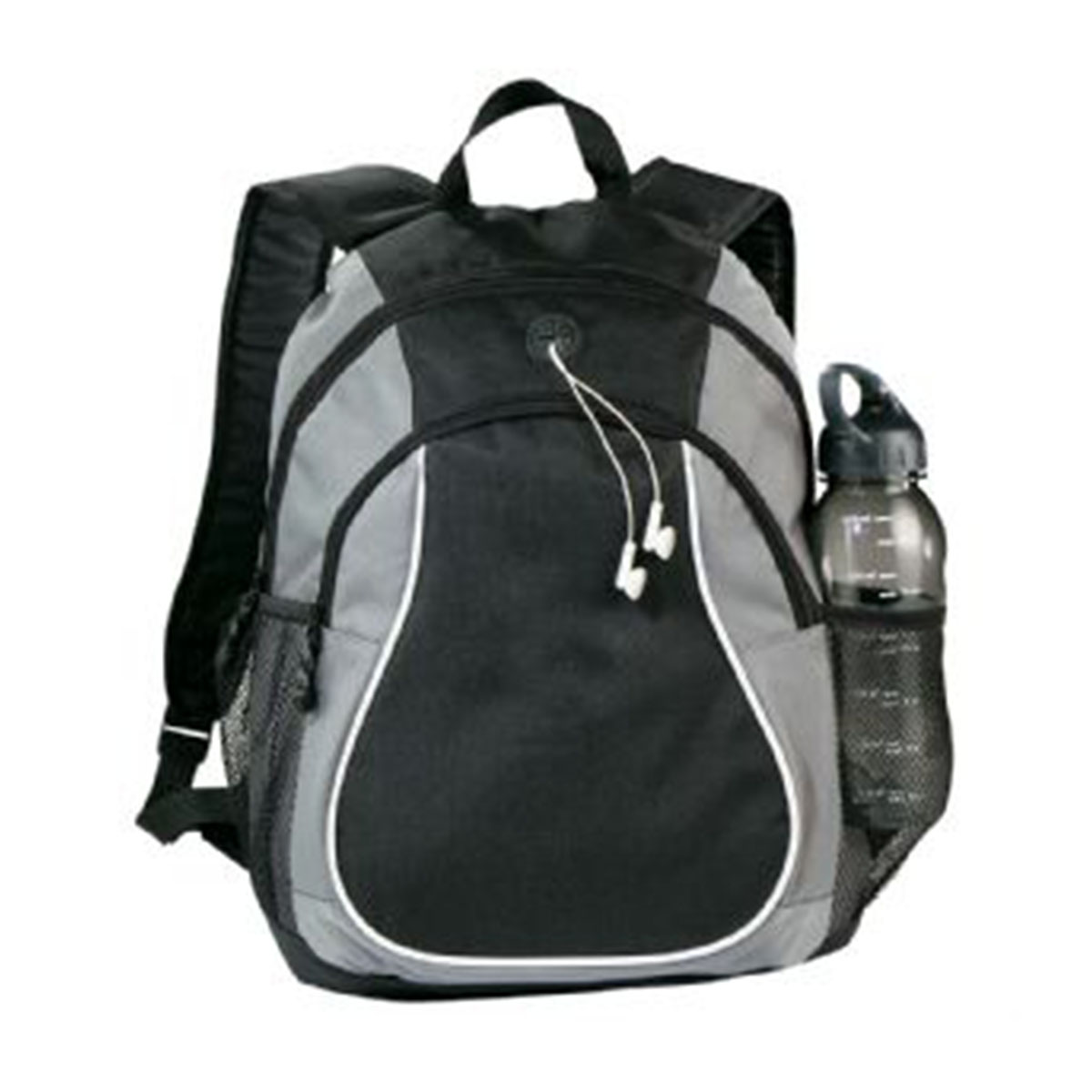Made from 600D Polyester. Large zippered main compartment with headphone port. Available in 3 colours.