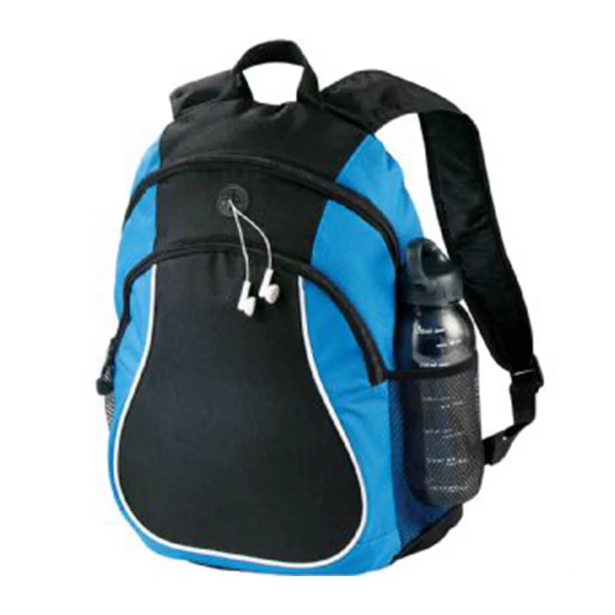 Made from 600D Polyester. Large zippered main compartment with headphone port. Available in 3 colours.
