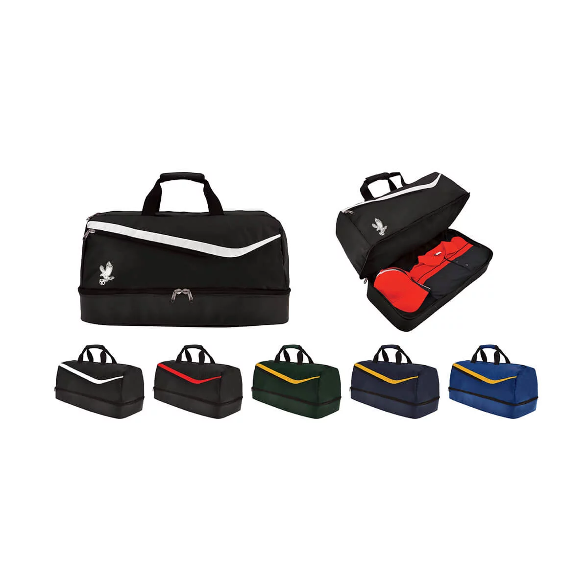 Main compartment with zipper closure, Front zippered pocket, Zippered boot compartment, Carry handle. Material – 600 denier nylon