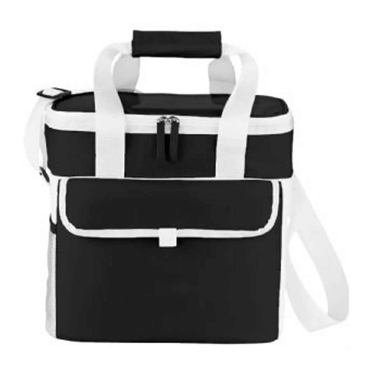 This cooler is ideal for picnics and outdoor events. It has a zippered main compartment, open front pocket with Velcro flap closure, a side mesh pocket. Available in 3 colours.