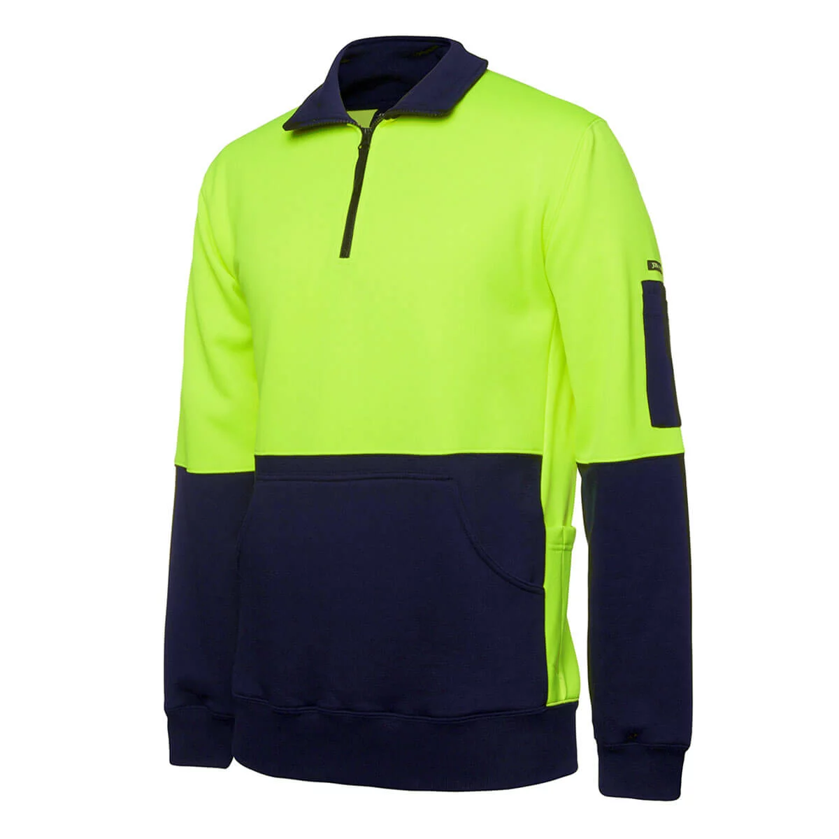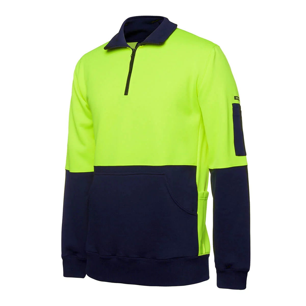 80% Polyester for durability, 20% Cotton for comfort anti-pilling fleece,330gsm,Complies with Standards AS/NZS 1906.4:2010 and AS/NZS 4602.1:2011 Day only,Kangaroo pocket on centre front, Bar tack on pocket opening,Two self fabric side pockets with pen insert and Hook-Pile Tape closure,Cotton Twill pen pocket added to sleeve, Bar tack at pocket openings that match dust panel colour