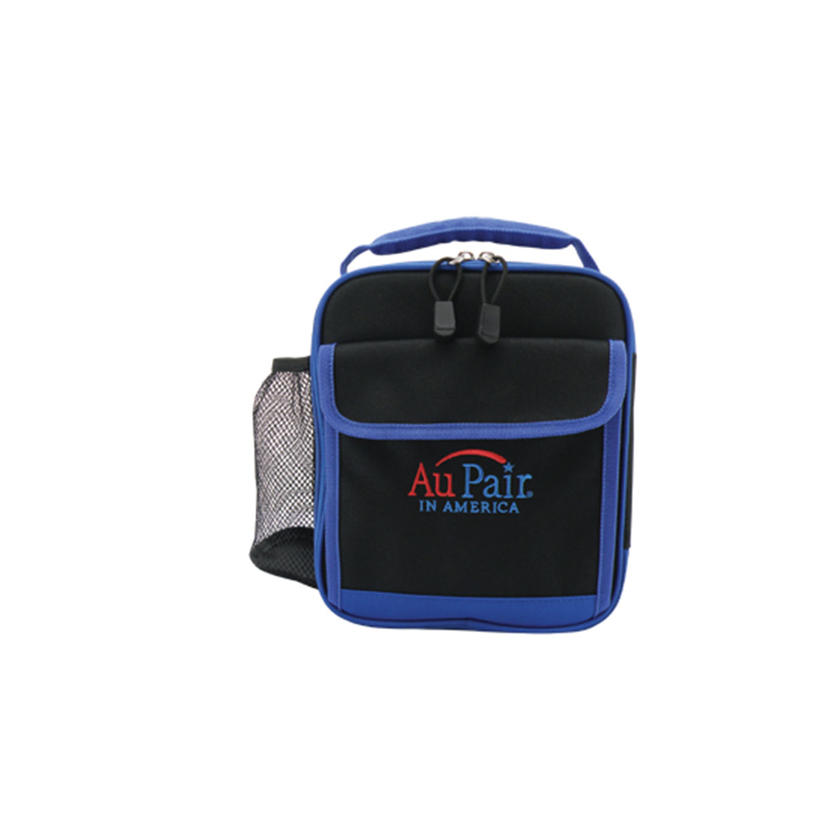 Double zippered closure lid, Front pocket with velcro, Mesh pocket at one side with bottle holder. Material – 600 Denier Nylon with Quality Foam Insulation