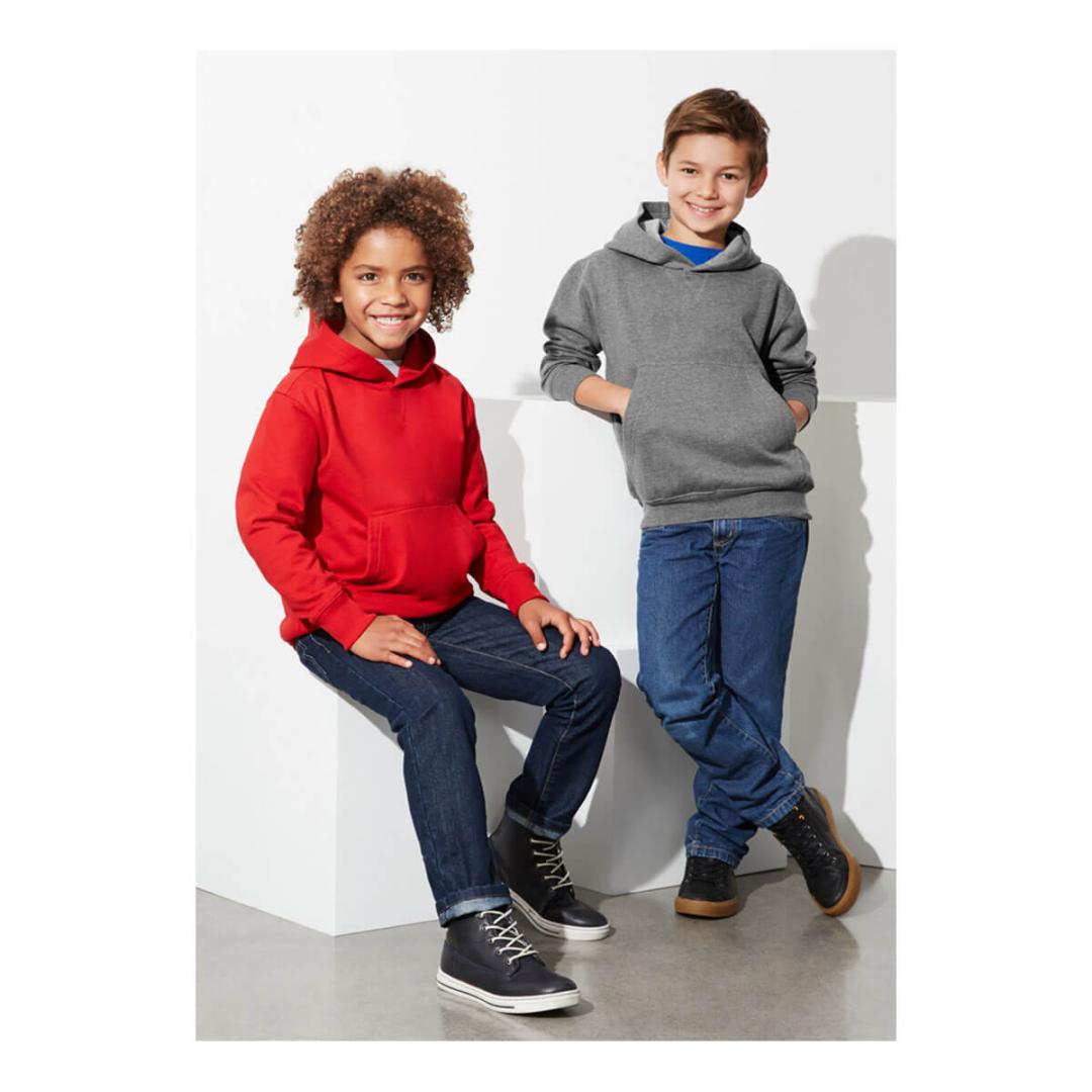 Durable 65% Polyester, 35% Cotton fleece 320 GSM – Traditional front kangaroo pocket Adults style features hood with wider shoelace drawstring No drawstring on Kids keeping kids safe Knitted ribbed band on hem and cuff
