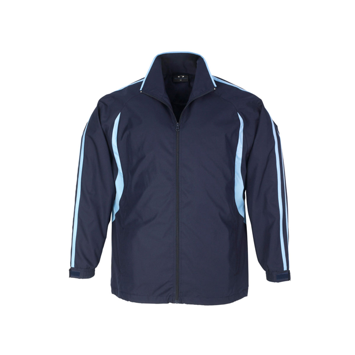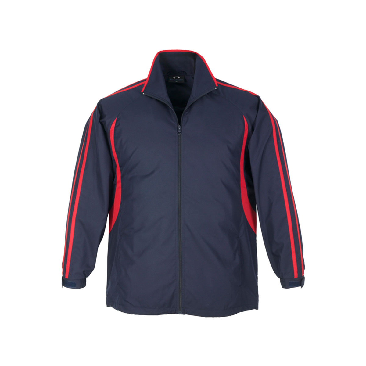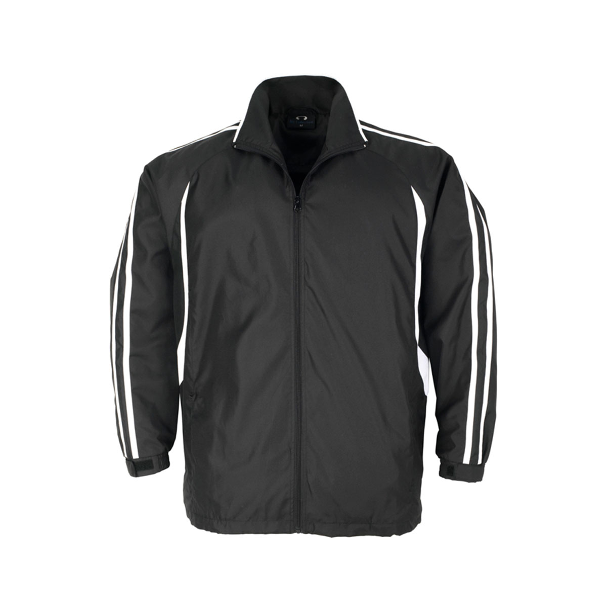 Outer: 100% Micro Fibre Jacquard Ripstop with Micro Fibre panels Body inner: Single jersey lining Sleeve inner: 100% Polyester Taffeta lining – Raglan sleeve top with flash splice and twin stripe detail Full zip front with two zippered pockets Zipper access for embroidery Elasticated sleeve cuffs with adjustable flap