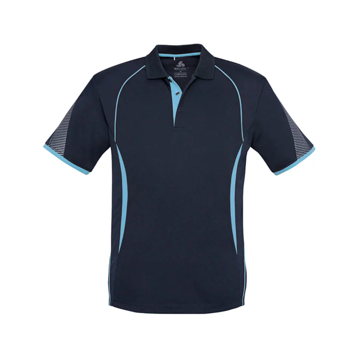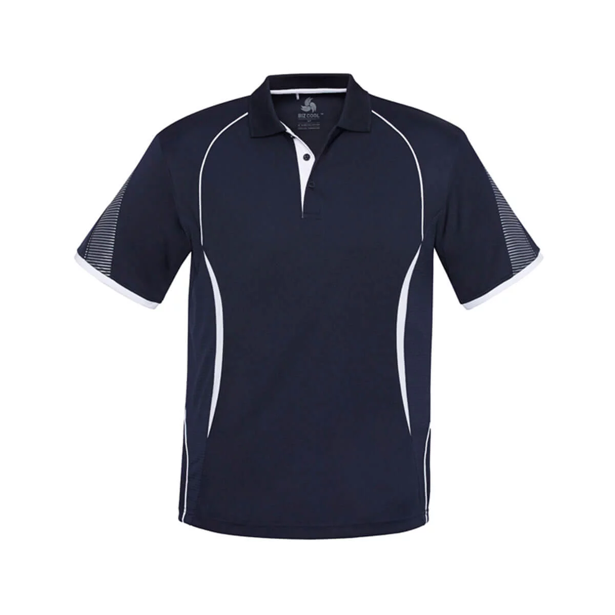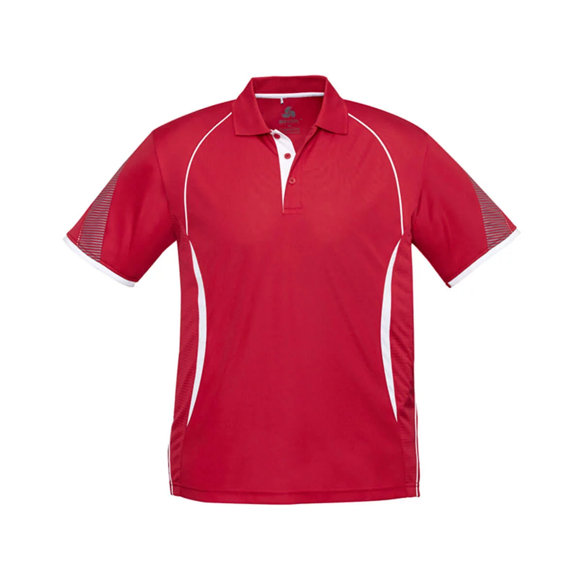 100% Polyester Sports Interlock 155 GSM UPF rating – Excellent – Grid mesh underarm panels for breathability Unique sleeve print feature Contrast panels and piping Knitted collar with contrast placket