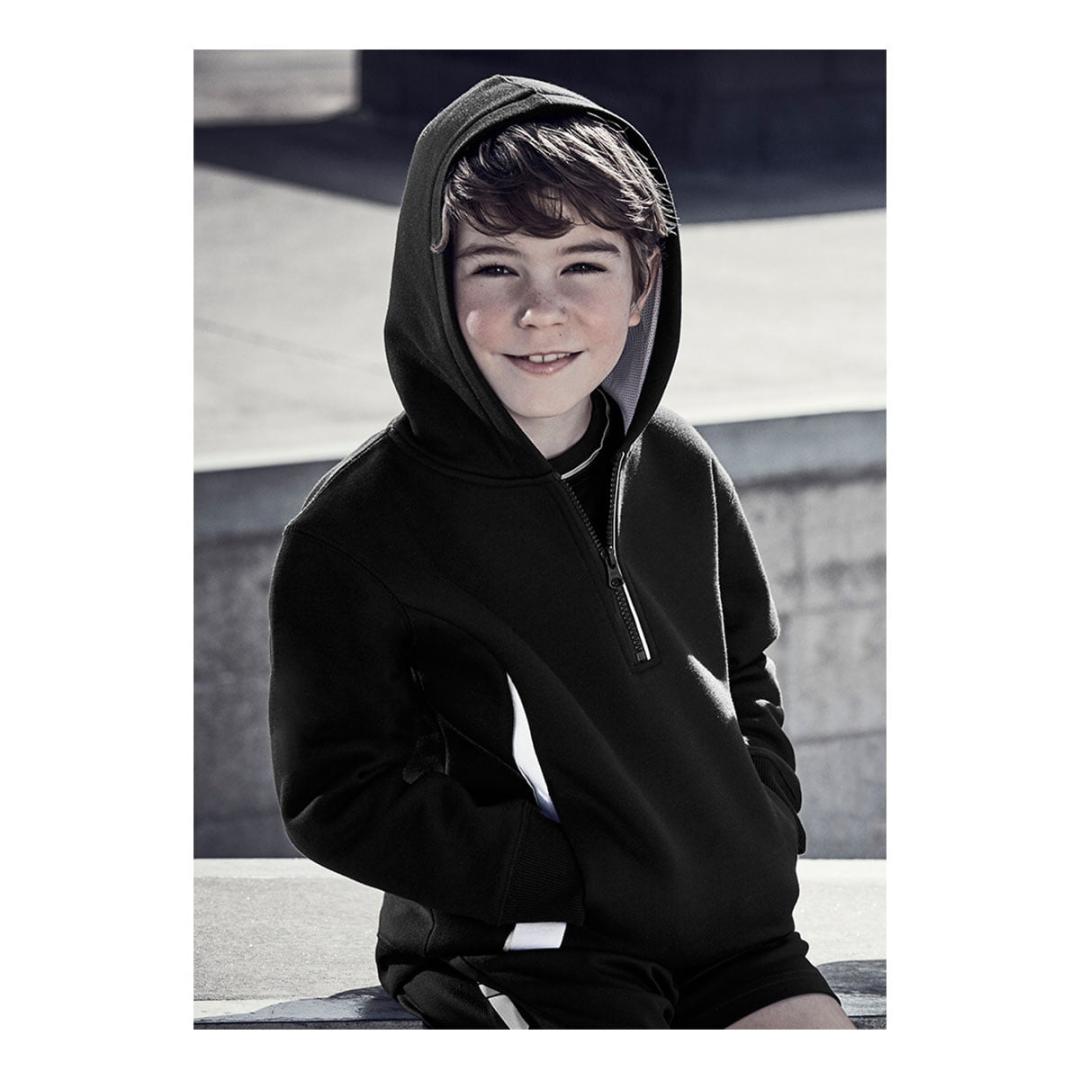 Durable 65% Polyester 35% Cotton Fleece 320 GSM UPF rating – Excellent – Silver reflective trims help you stand out Modern ½ zip neck for easy on & off Hand warmer side pockets Soft ribbed hem & cuff for a comfortable fit Full mesh-lined hood