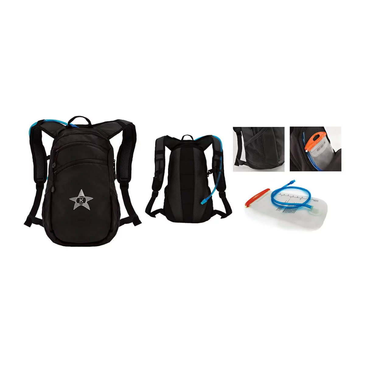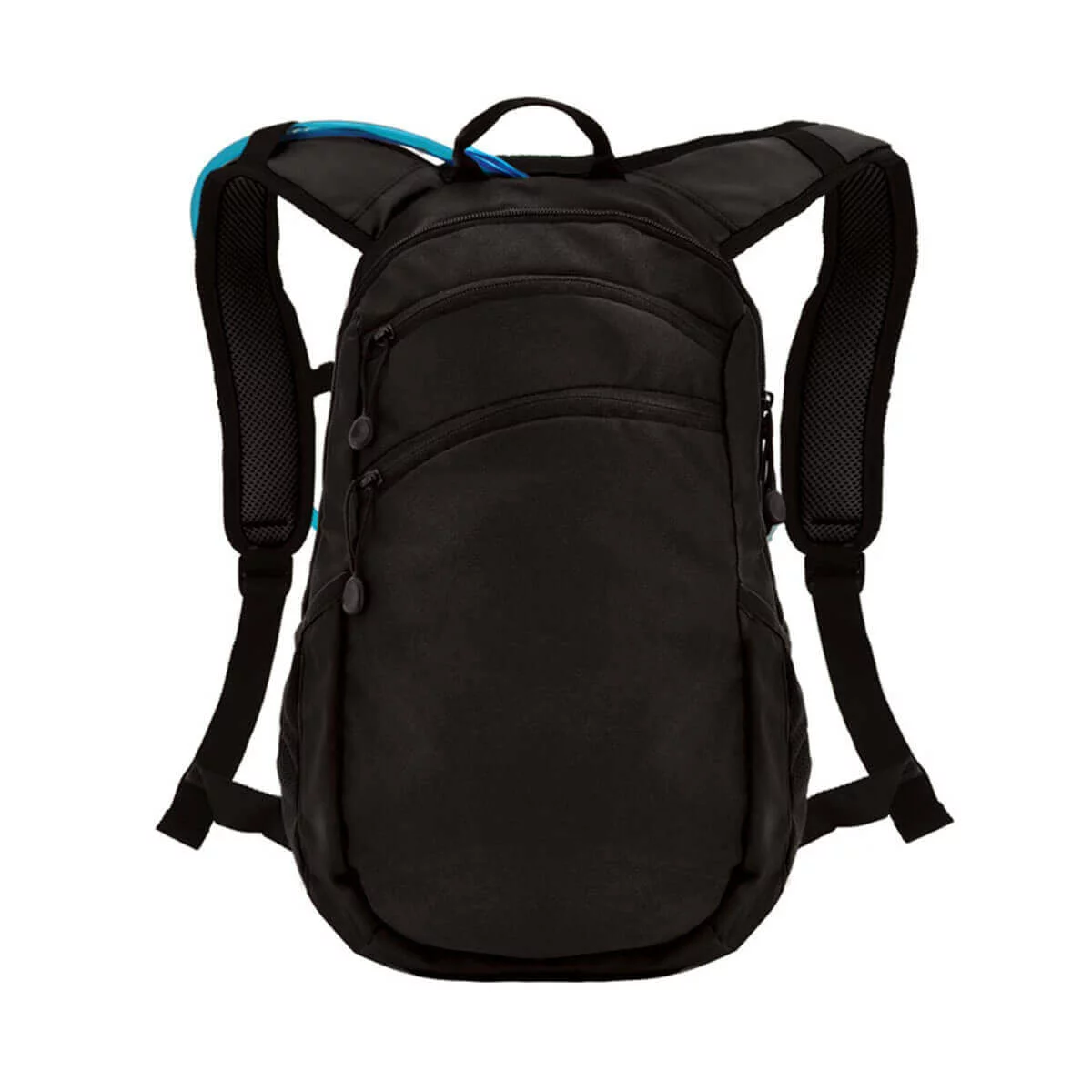 Zippered main compartment with inside mesh pocket, Two front zippered pockets, 1.5L Hydration compartment with rube access via shoulder strap, Adjustable padded straps with carry handle, Elastic mesh pockets on both sides, Extra padding on back for comfort. Material – Premium 600 denier nylon