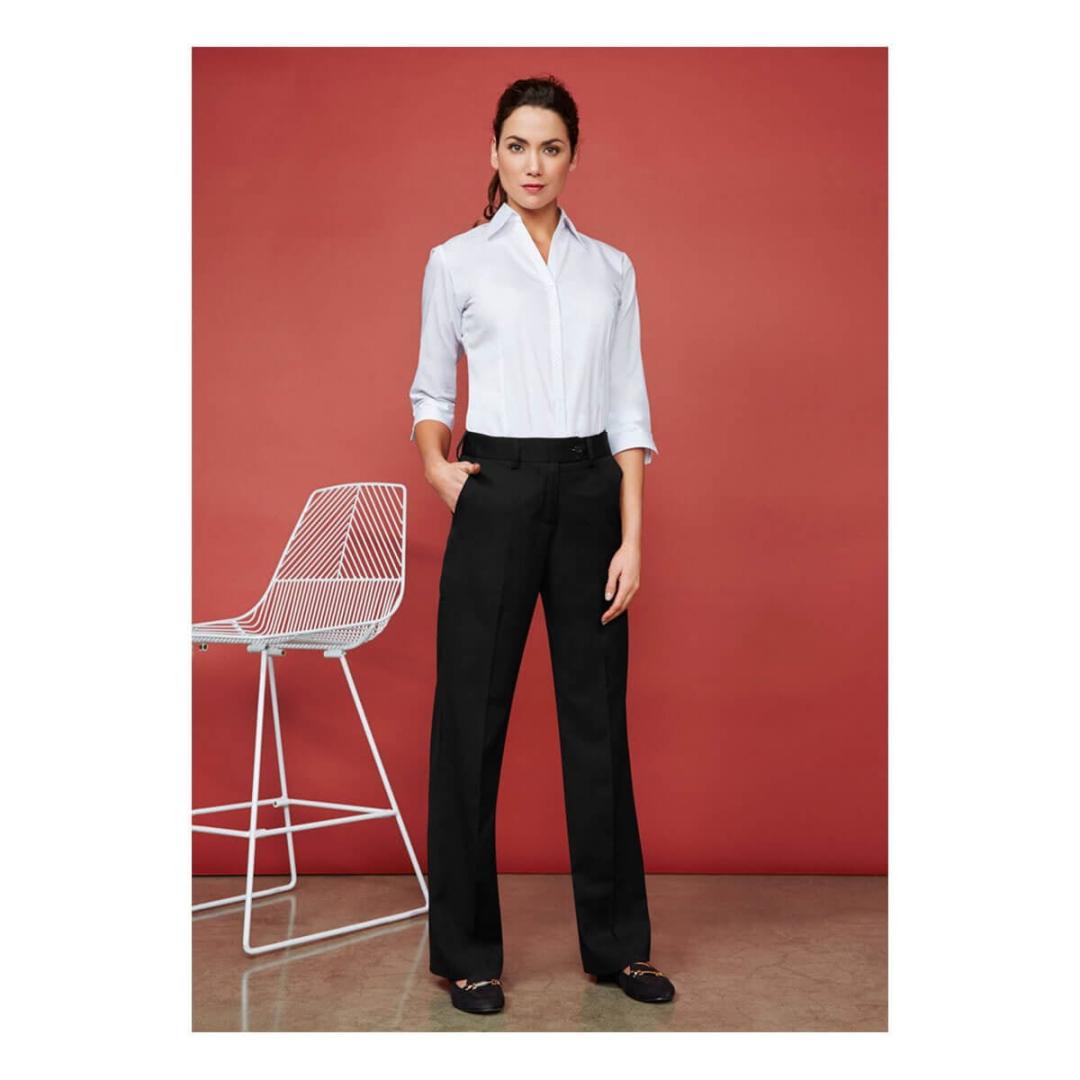 65% Polyester, 35% Viscose – Teflon® stain resistance fabric Durable, easy care fabric – Unique Flexi-band feature maximises waist comfort and fit Flat front with 2 angled pockets, 2 back welt pockets Generous 5cm hem allowance for longer length alteration