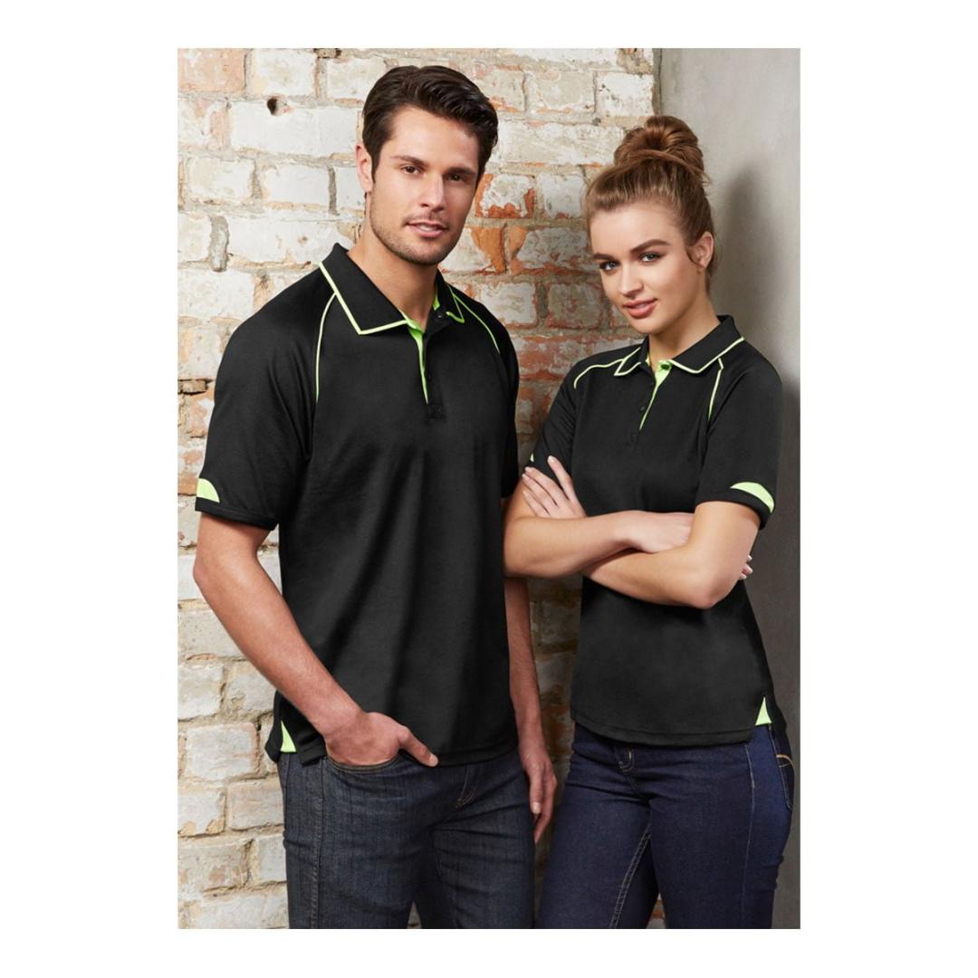 50% Cotton, 50% Polyester with Hi-Viz Fluoro Trims, Cotton Backed Polyester Fabric 180 GSM UPF rating – Excellent – Quick dry – rapid evaporation of moisture through the fibres Ribbed collar with fluoro tipping Side splits with fluoro insert fabric