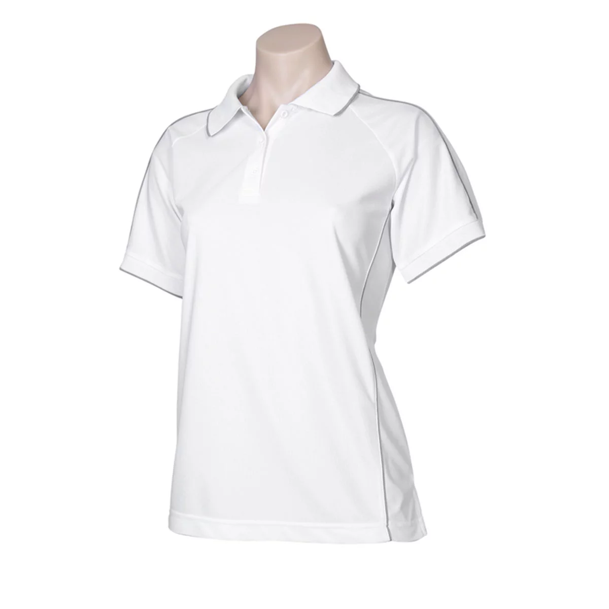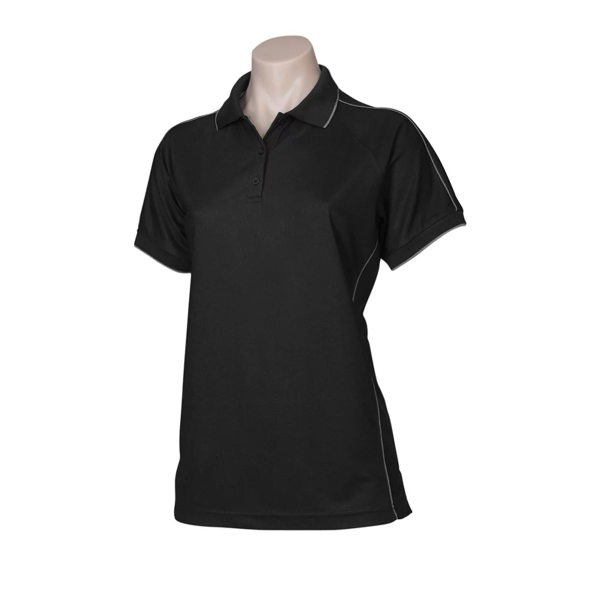 100% Breathable Polyester Sports Knit 160 GSM UPF rating – Very Good – Raglan polo with tonal piping Tipped knitted collar and knitted cuff with single stripe Slimline 3 button placket