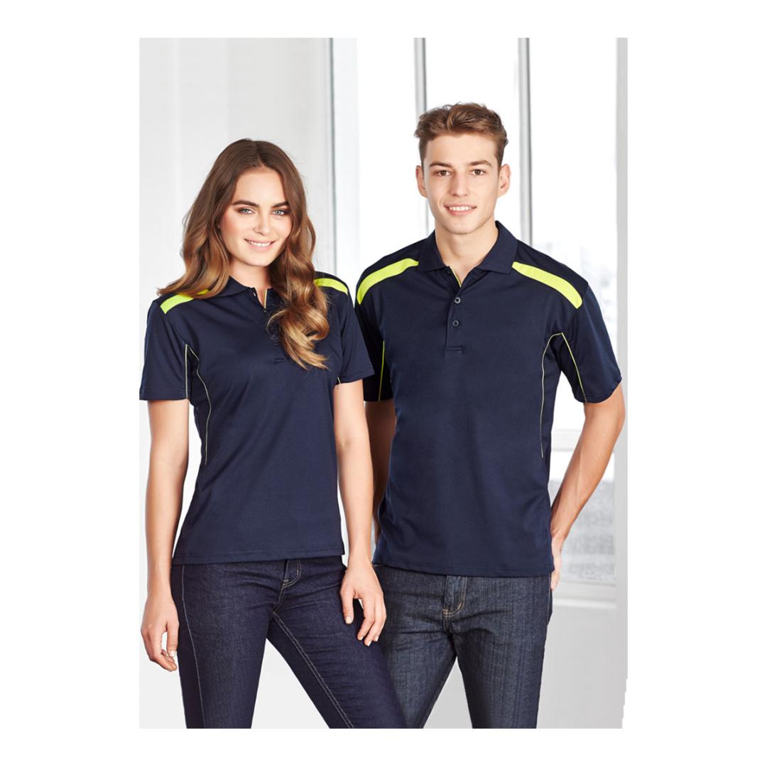 100% Breathable Polyester 155 GSM UPF rating – Excellent – New stretch sports interlock fabric Contrast shoulder panels and piping Matching knitted collar Back and underarm mesh panel inserts for breathability