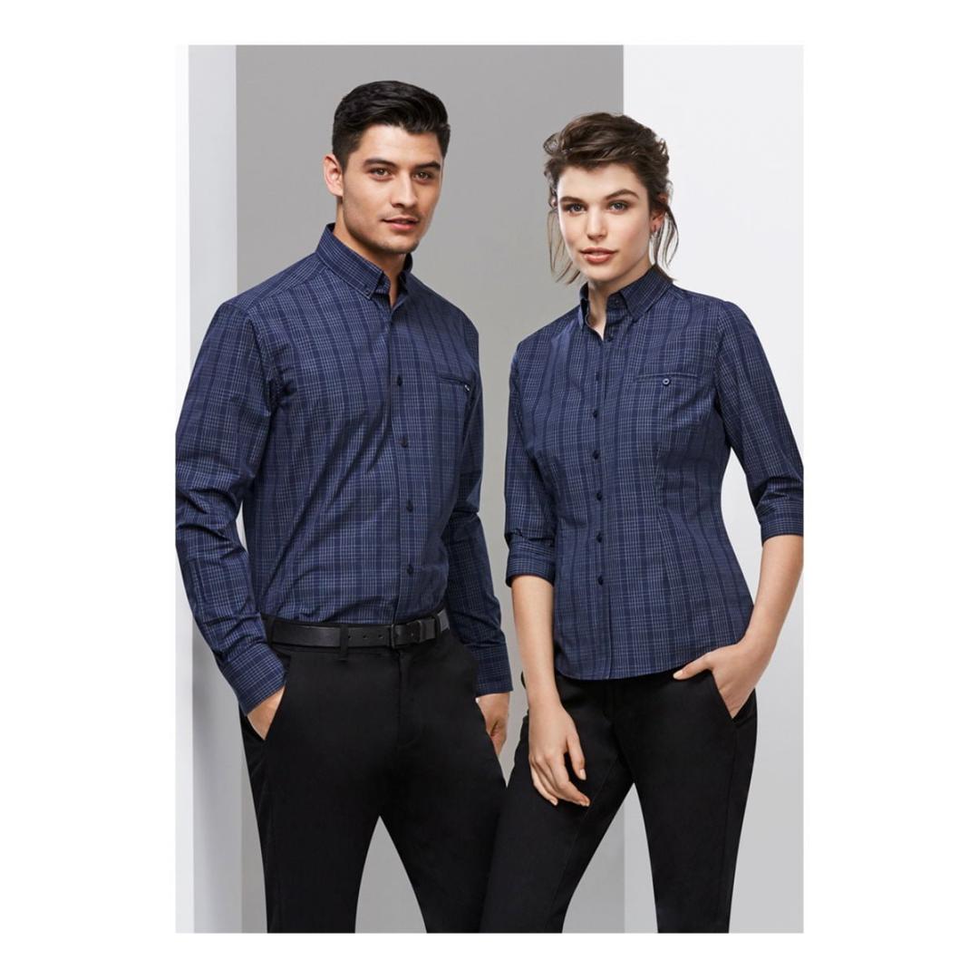 Easy Care 65% Polyester, 35% Cotton Yarn dyed, Prince Of Wales check fabric UPF rating – Very Good – Trend driven button-down collar and pocket Functional twin back pleats and adjustable cuff Curved hem can be worn in or out