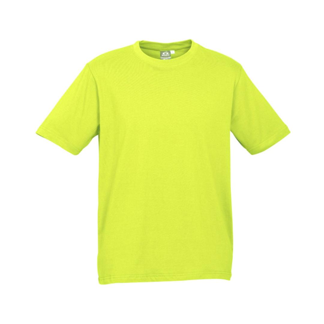 100% Premium Combed Cotton Fluoro Orange and Yellow-Lime: 65% Polyester, 35% Cotton 185 GSM – Twin needle sleeve and body hem Ribbed elastane neck opening for stretch and shape recovery Easy tear-away label to facilitate promotional re-branding Side seams for reduced twisting and ease of alignment for printing Mobilon tape across shoulders for comfort and shape retention