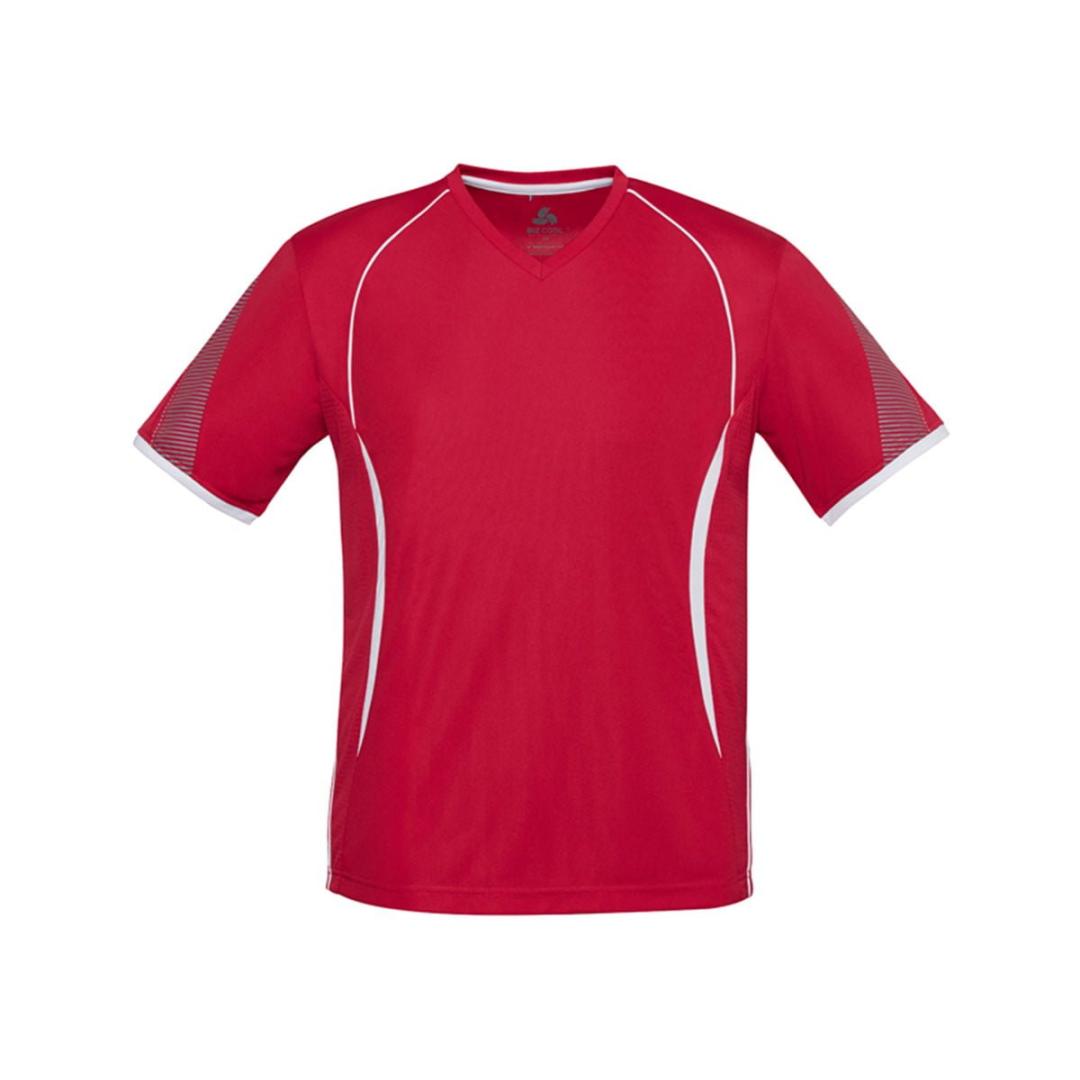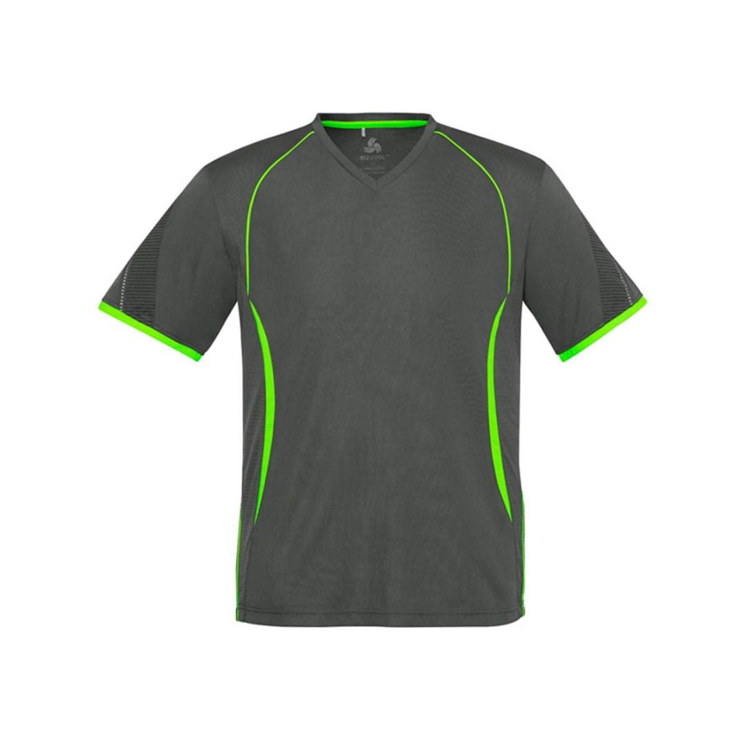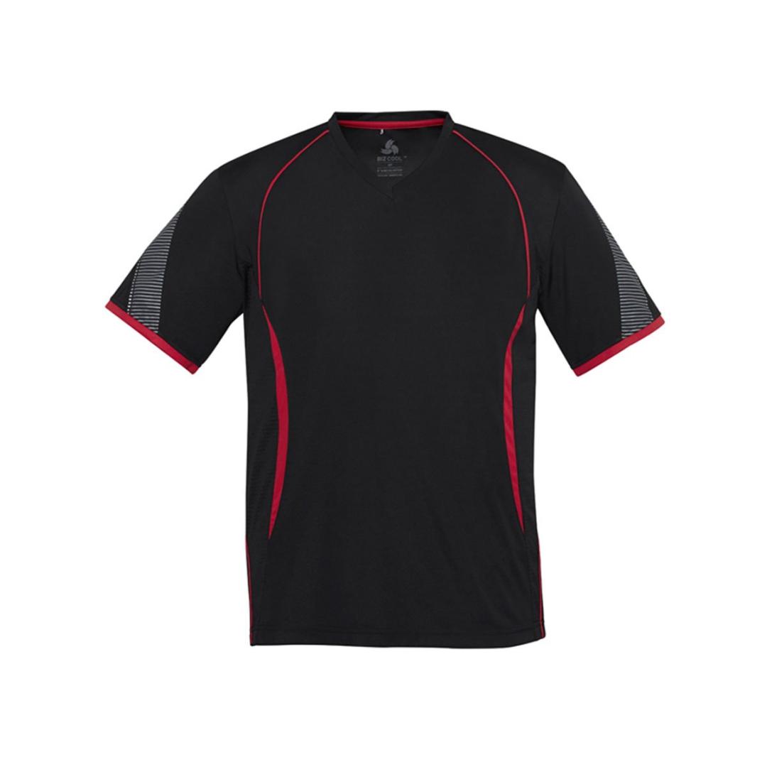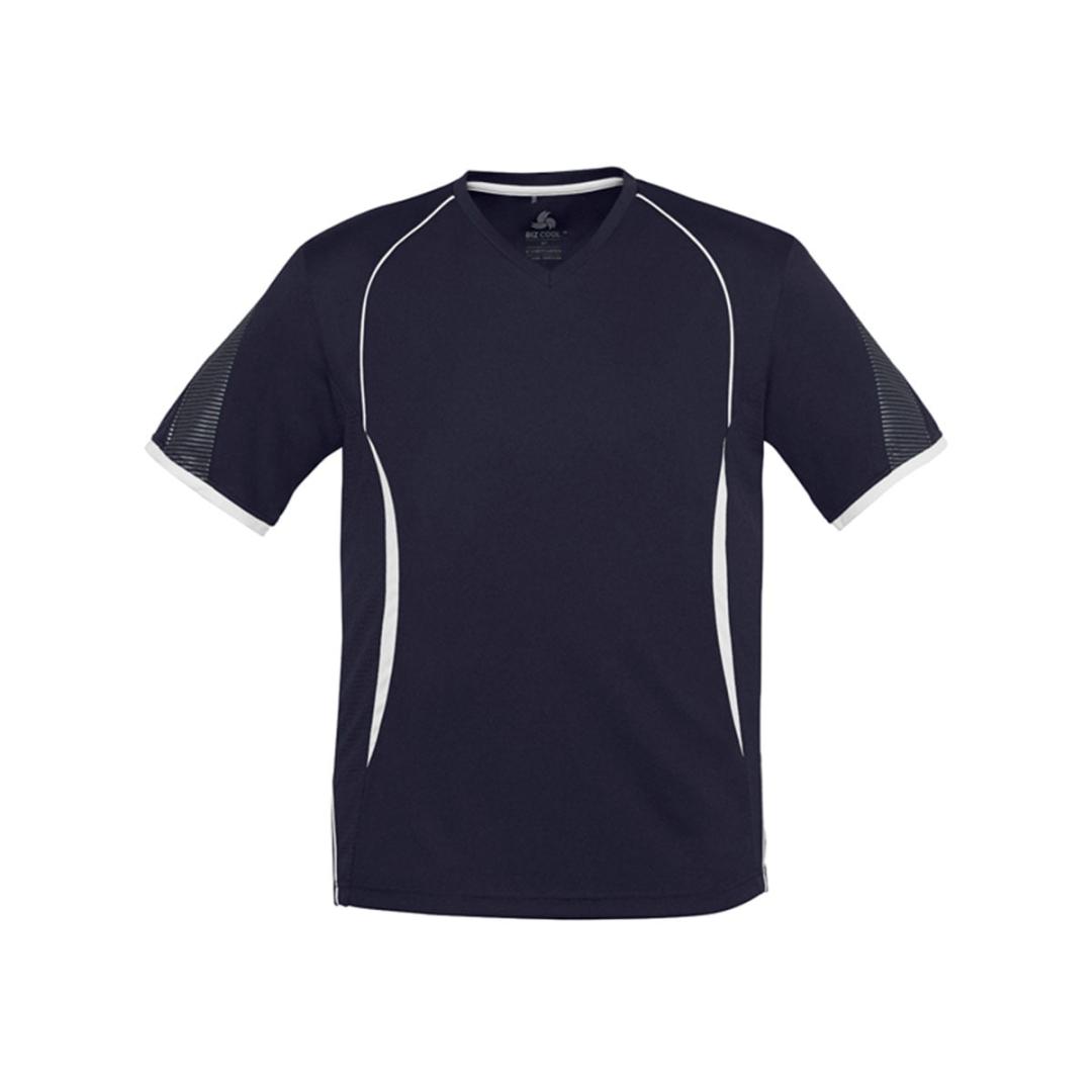 100% BPolyester Sports Interlock 155 GSM UPF rating – Excellent – Grid mesh underarm panels for breathability Unique sleeve print feature Contrast panels and piping Self-fabric V-Neck binding