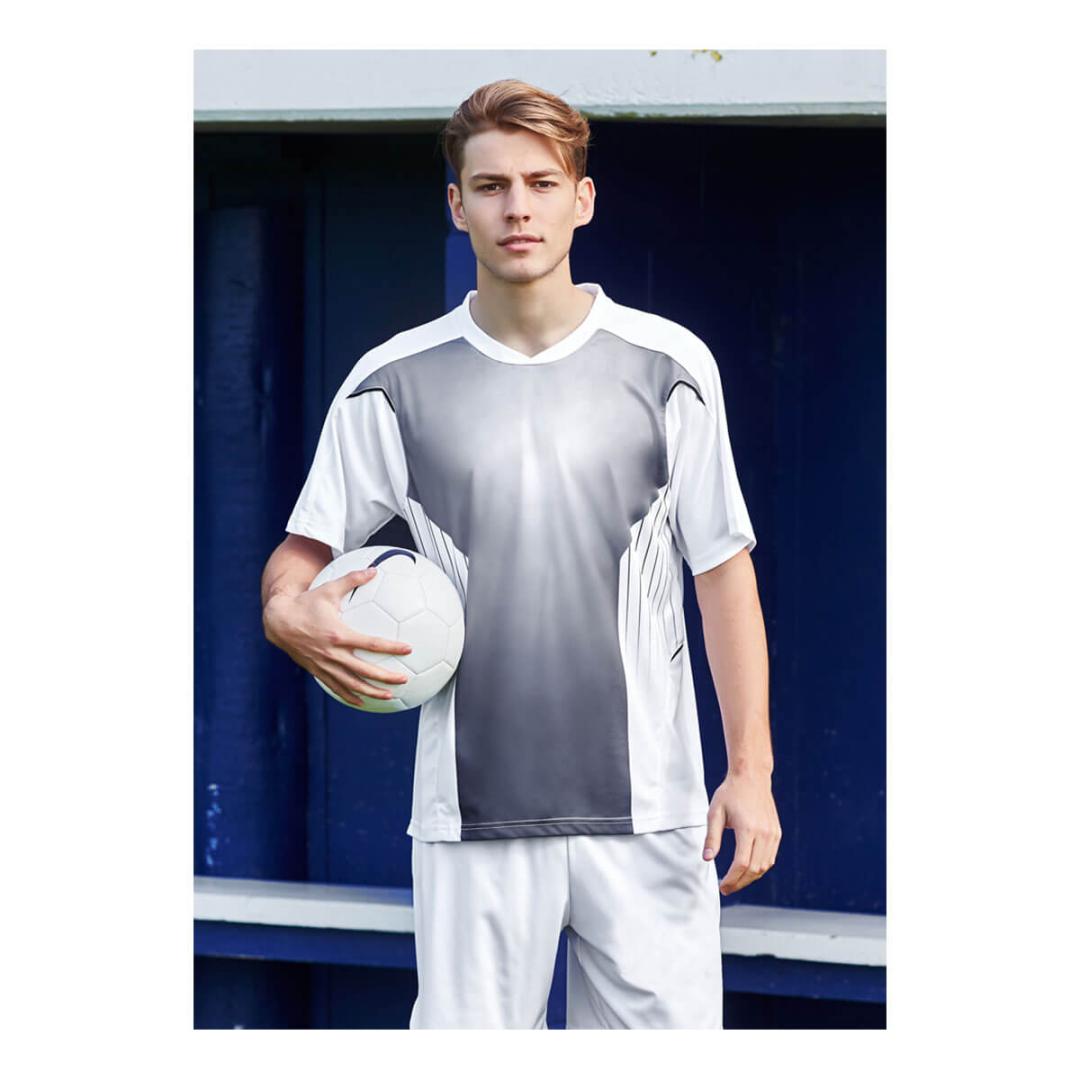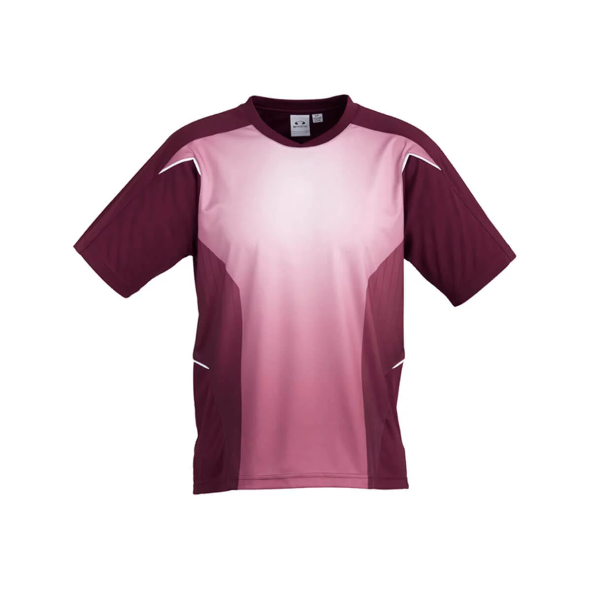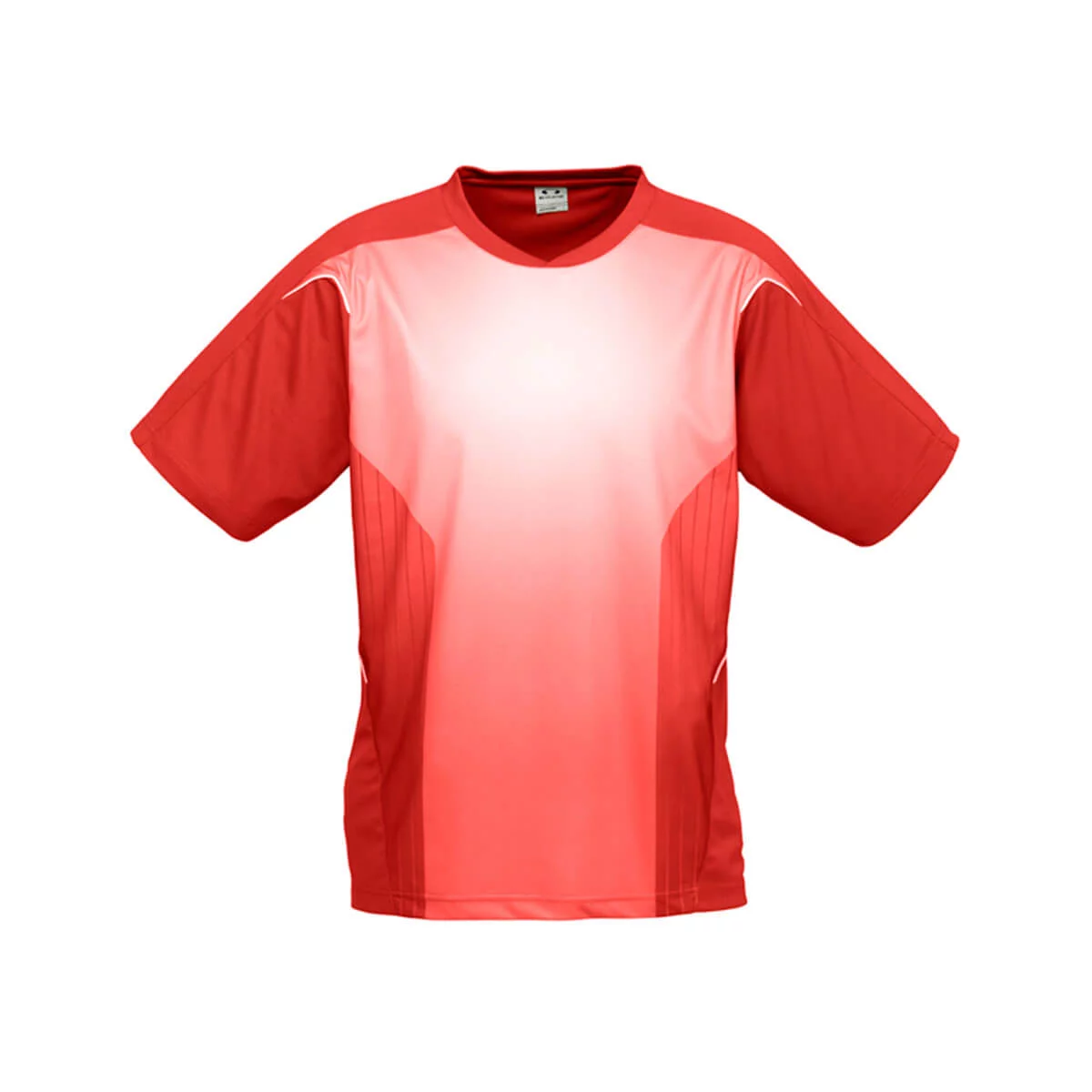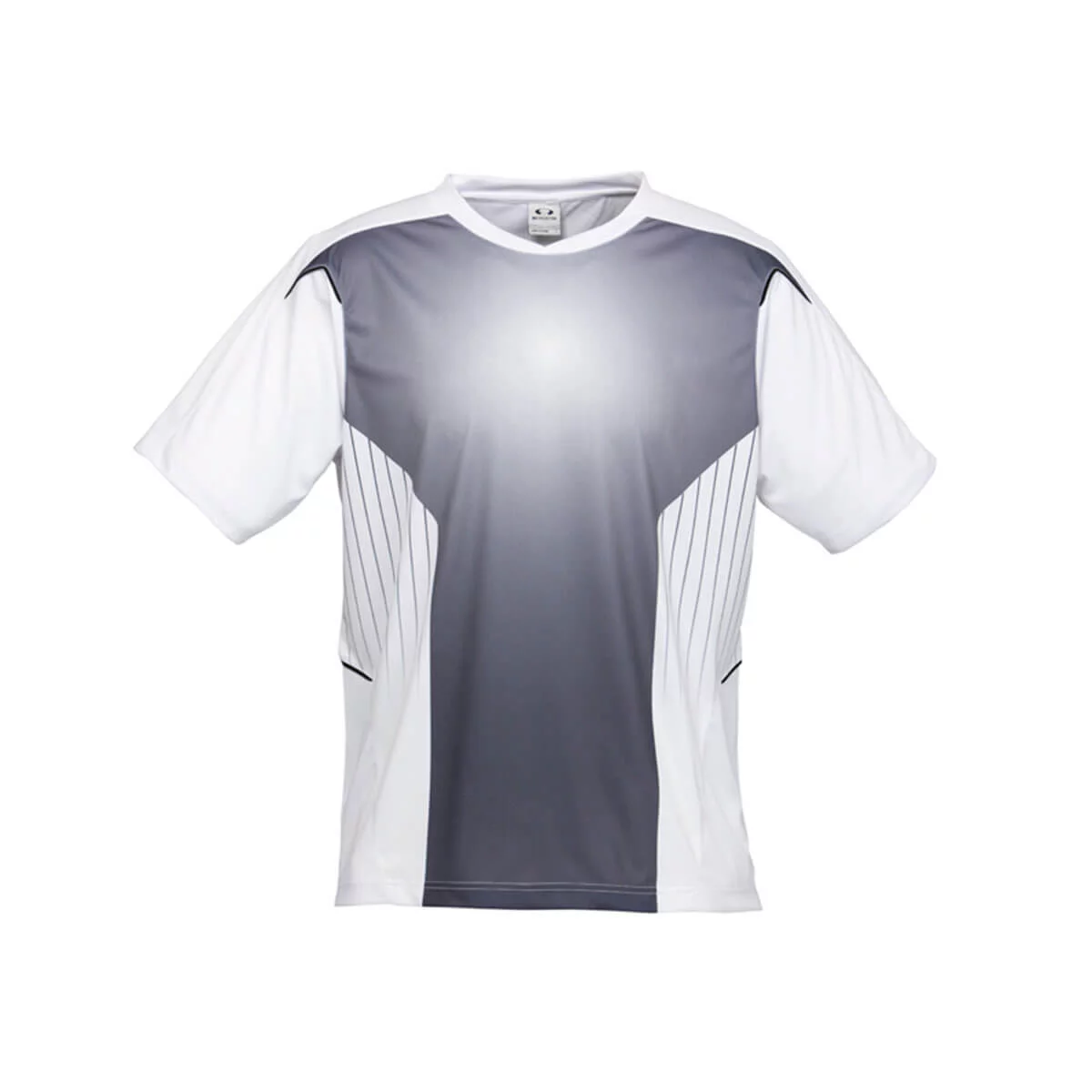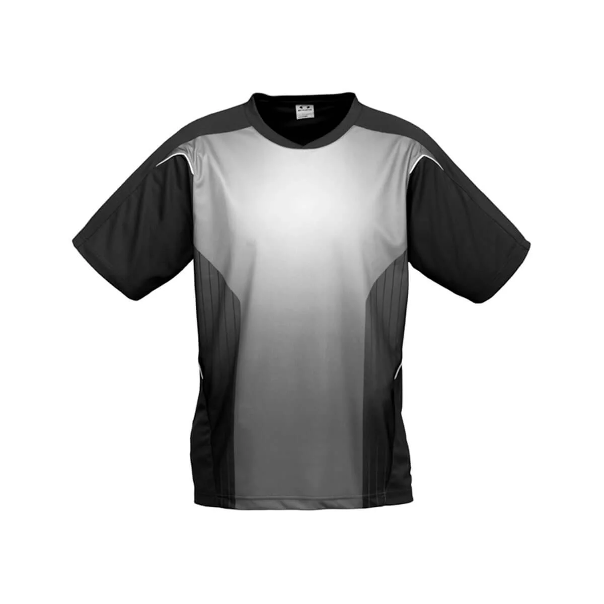 100% Breathable Polyester New stretch sports interlock fabric 155 GSM UPF rating – Excellent – Sublimated tonal front panel Contrast piping detail Contrast panels and piping Self fabric overlapping crew-neck