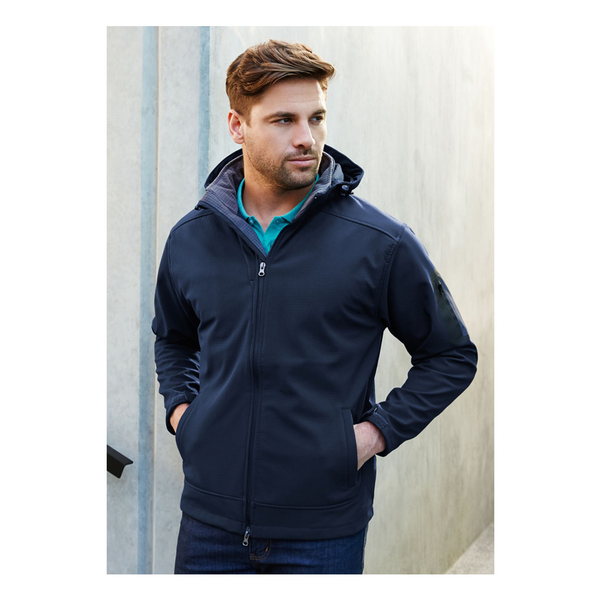 Outer: 96% Polyester, 4% Elastane – 4 Way Stretch Breathable Ripstop Shell Lining: 100% Polyester – Waffle Fleece with Bonded Membrane – Adjustable cuffs with laser cut welded pocket on sleeve Full zip front with storm flap and elastic drawstring hem Audio port access Detachable adjustable hood Concealed zippered front pocket and internal mobile pocket|BIZ TECH TECHNOLOGY FEATURES Water Repellent rating – 3000mm inner membrane Breathability rating – 1000g/m² Windproof
