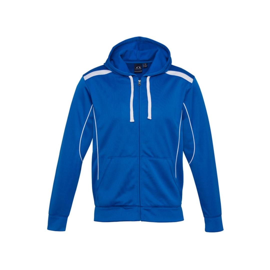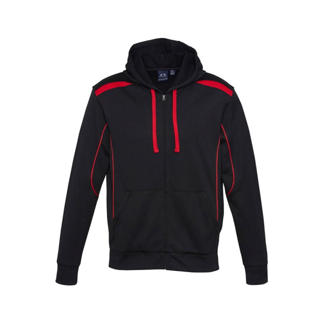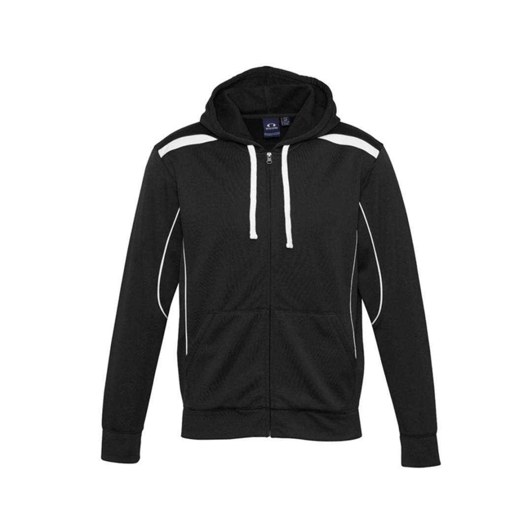 100% Polyester Fleece 245 GSM – Contrast shoulder panels and piping Full front zipper with kangaroo pocket Matching modern loose-fit hem ribbing