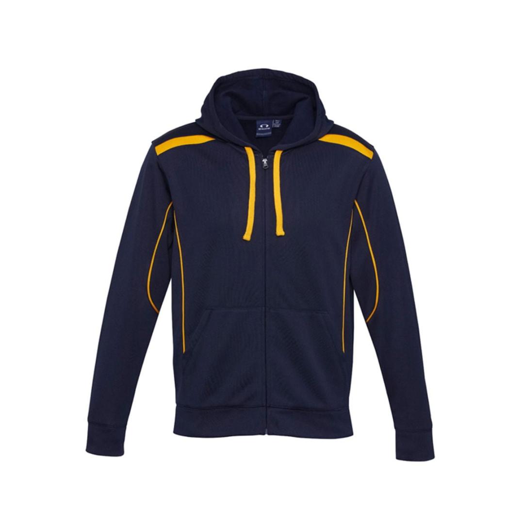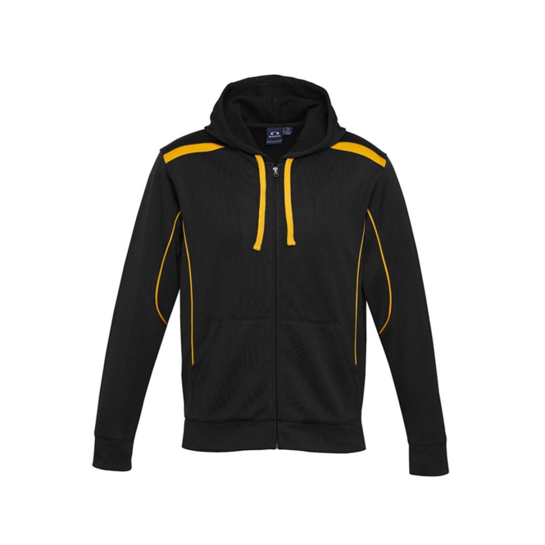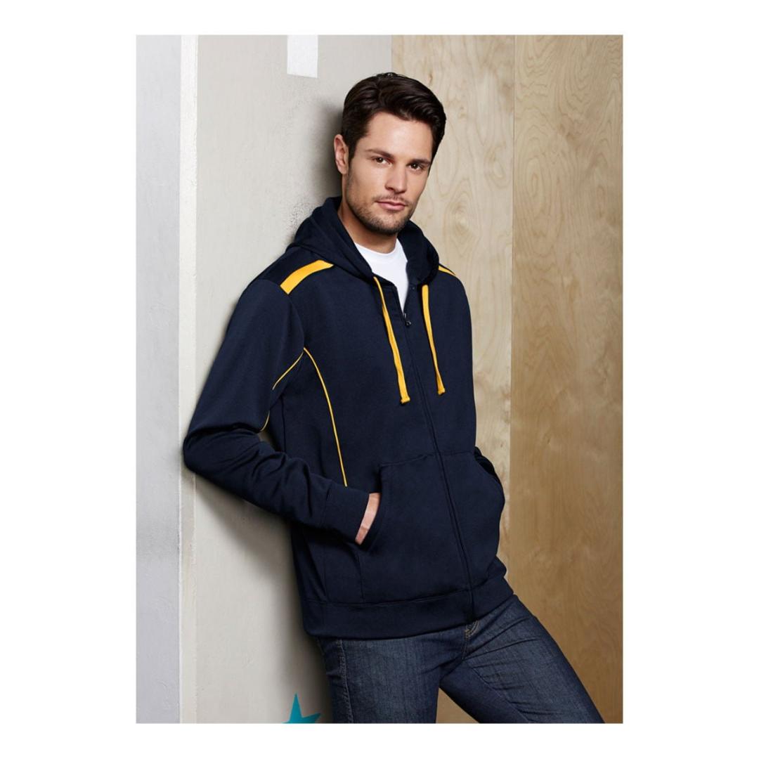 100% Polyester Fleece 245 GSM – Contrast shoulder panels and piping Full front zipper with kangaroo pocket Matching modern loose-fit hem ribbing