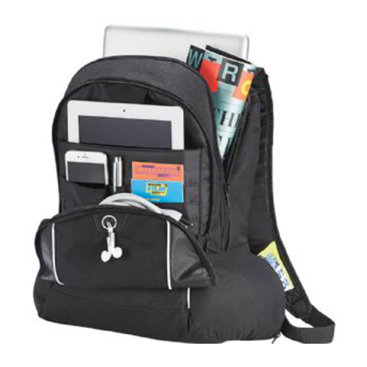 The Zippered main compartment has a padded laptop sleeve and elastic organiser band to hold your mobile accessories, including power banks and cables.