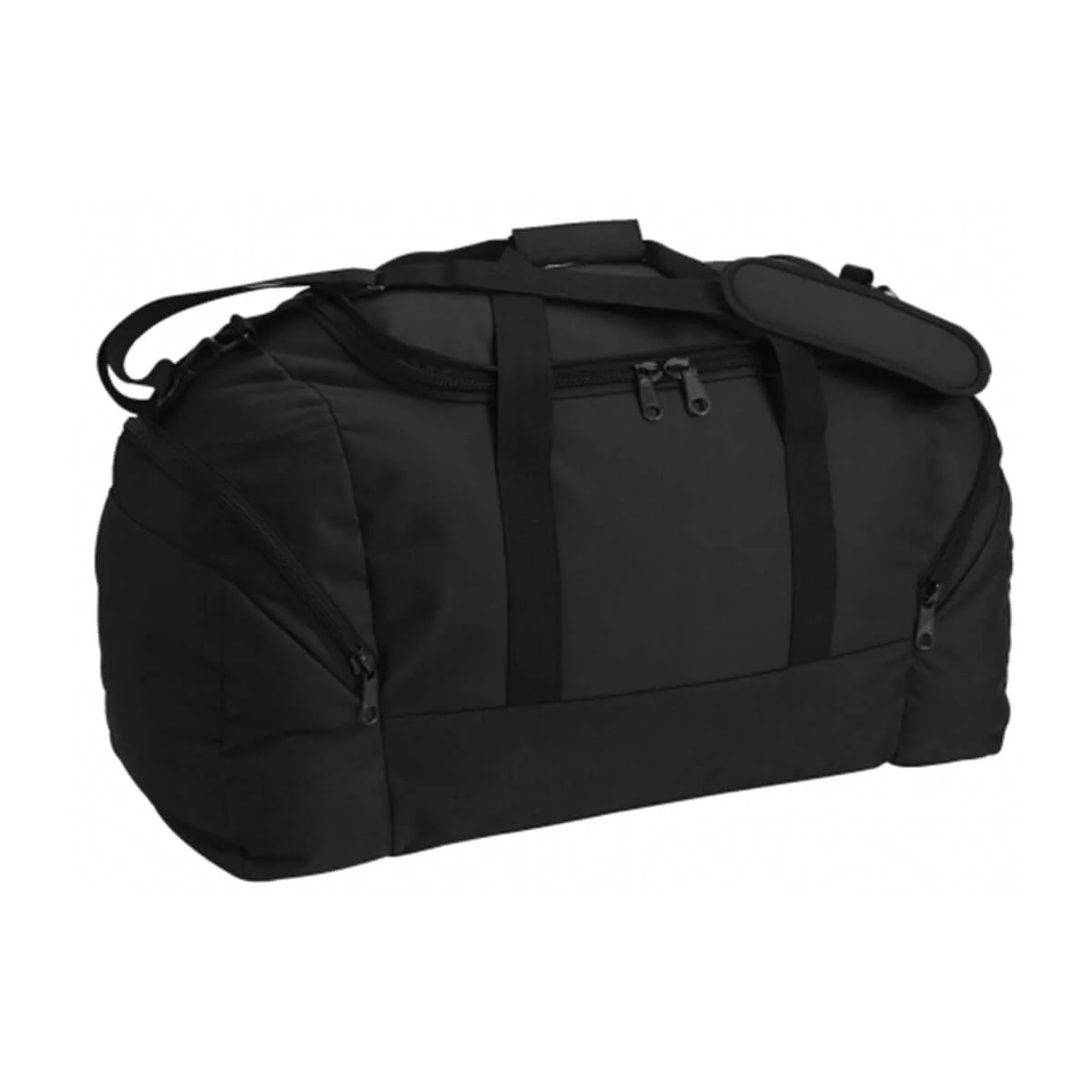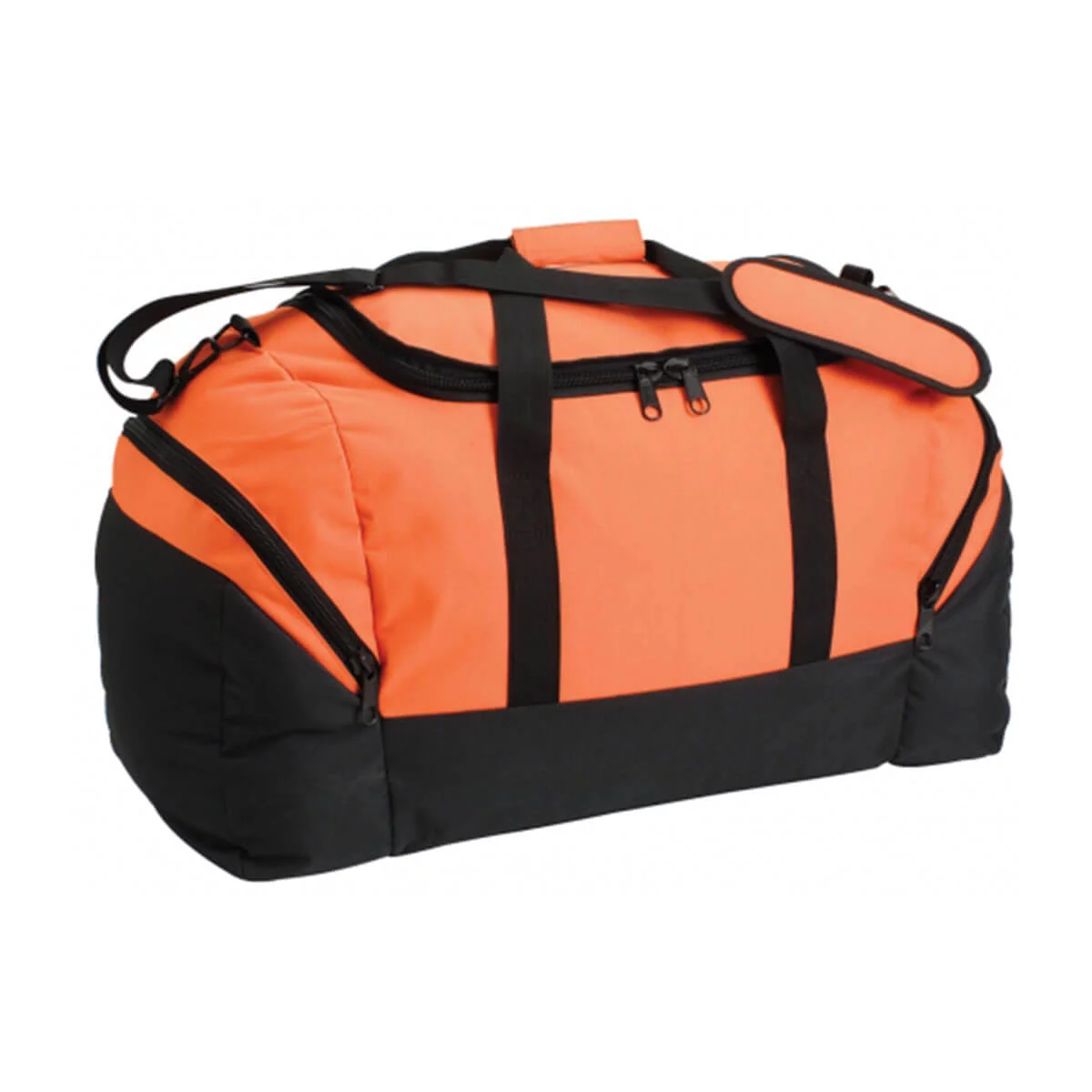Large centre compartment with U-shaped openin, Large zippered pocket at each end, Stong carry handle with wraparound velcro closure, Removable, adjustable shoulder strap, Studded base for durability. Material – 600 Denier Nylon